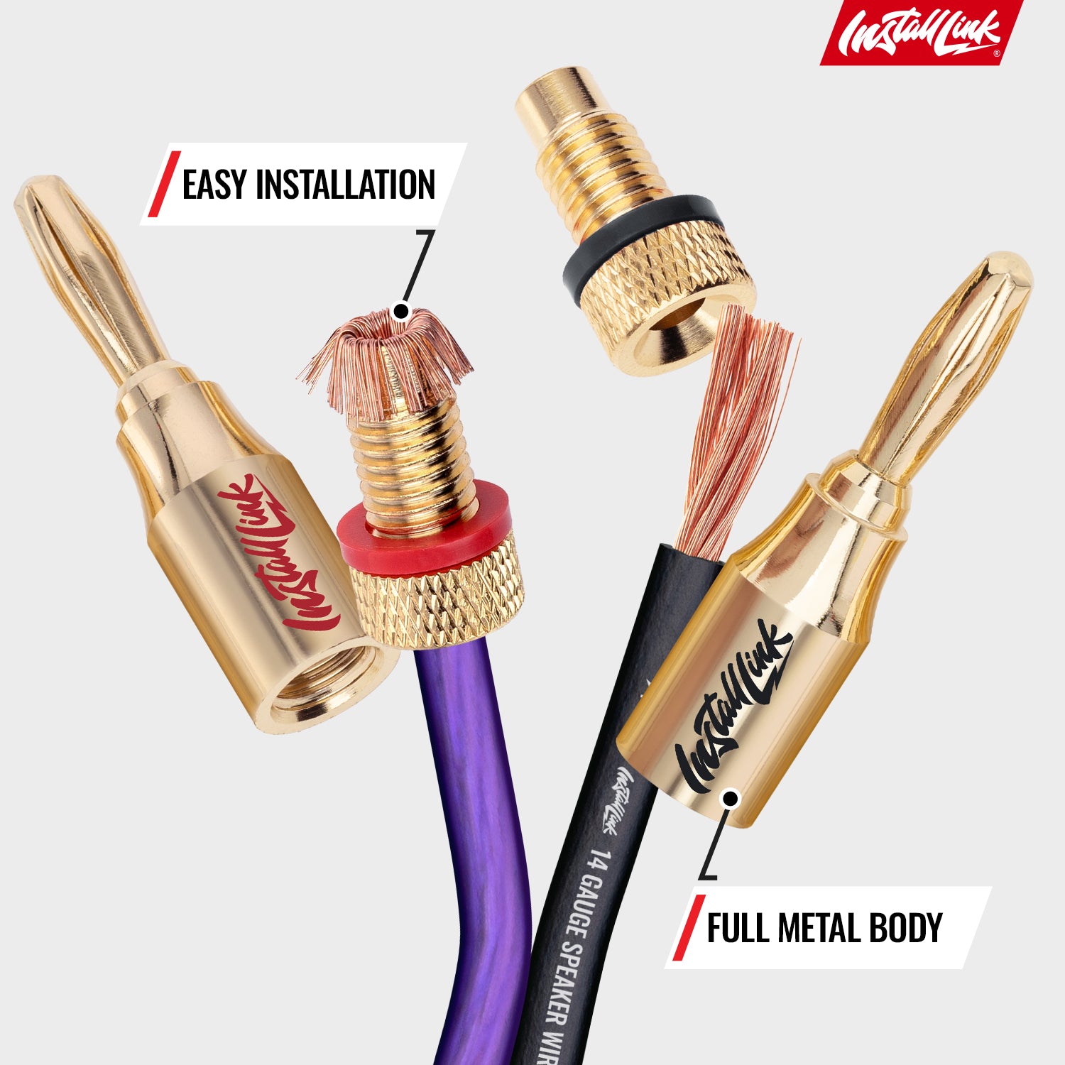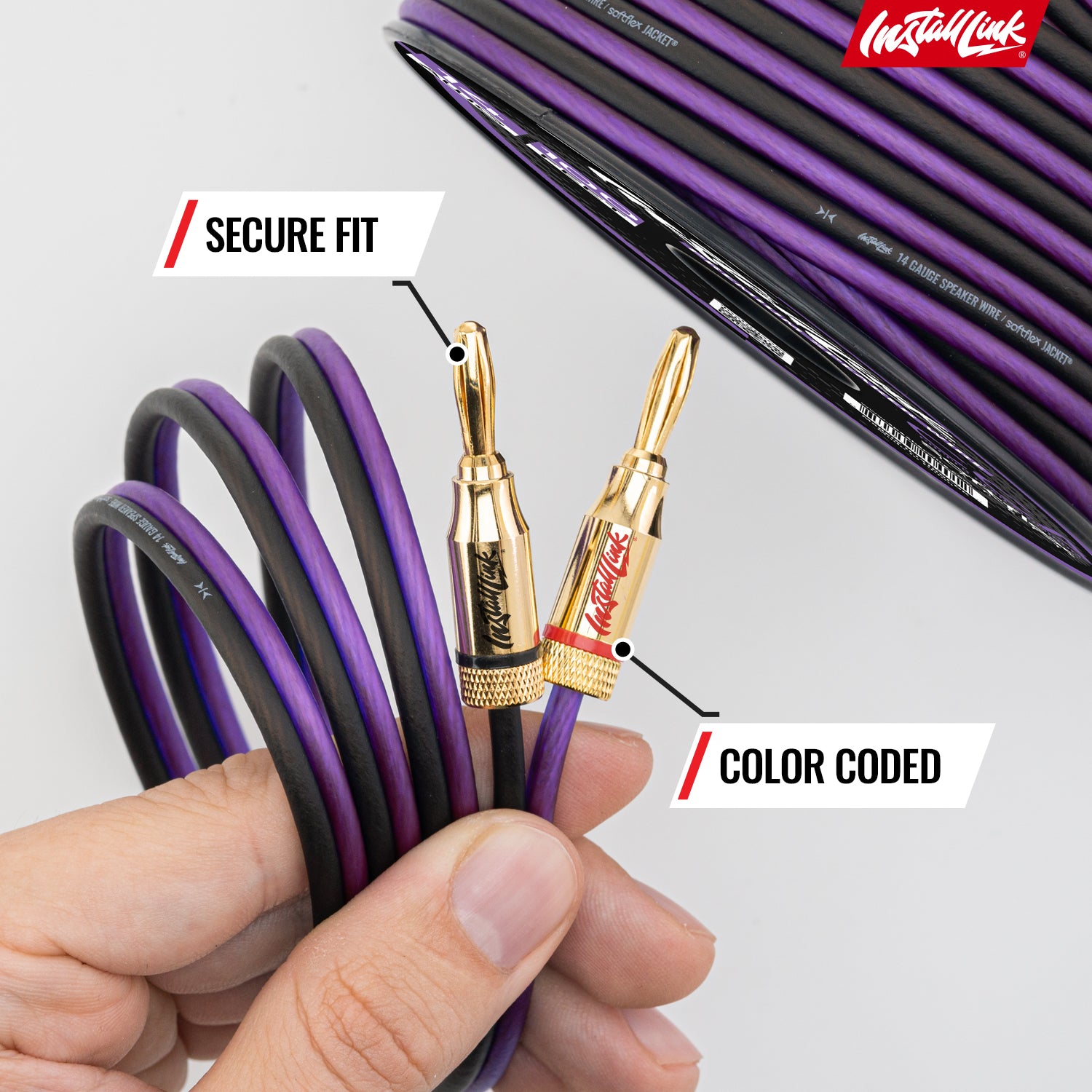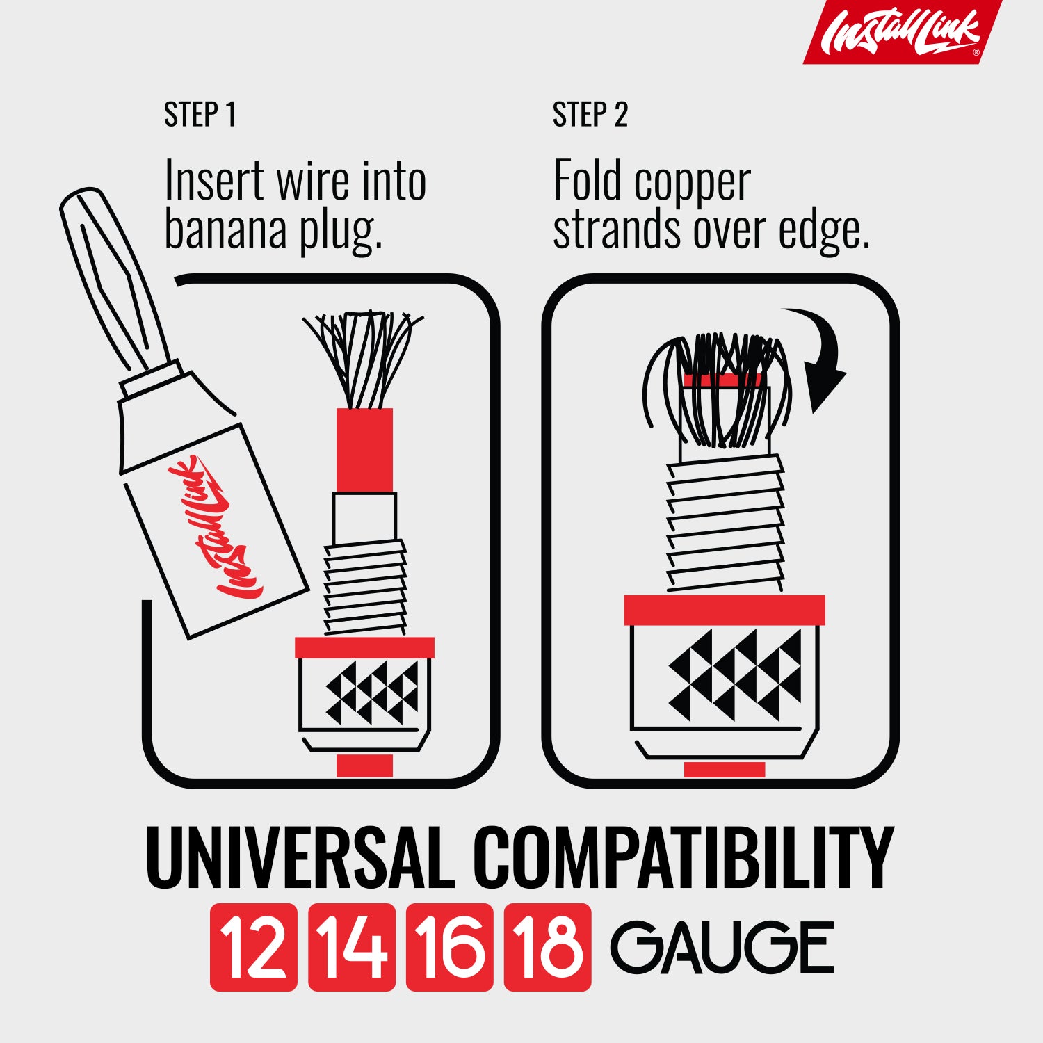 - PREMIUM BANANA PLUGS, 12 PACK – Ready to use with 12, 14, and 16 gauge wire for optimal conductivity and crystal-clear audio. Includes 6 red and 6 black coded plugs.